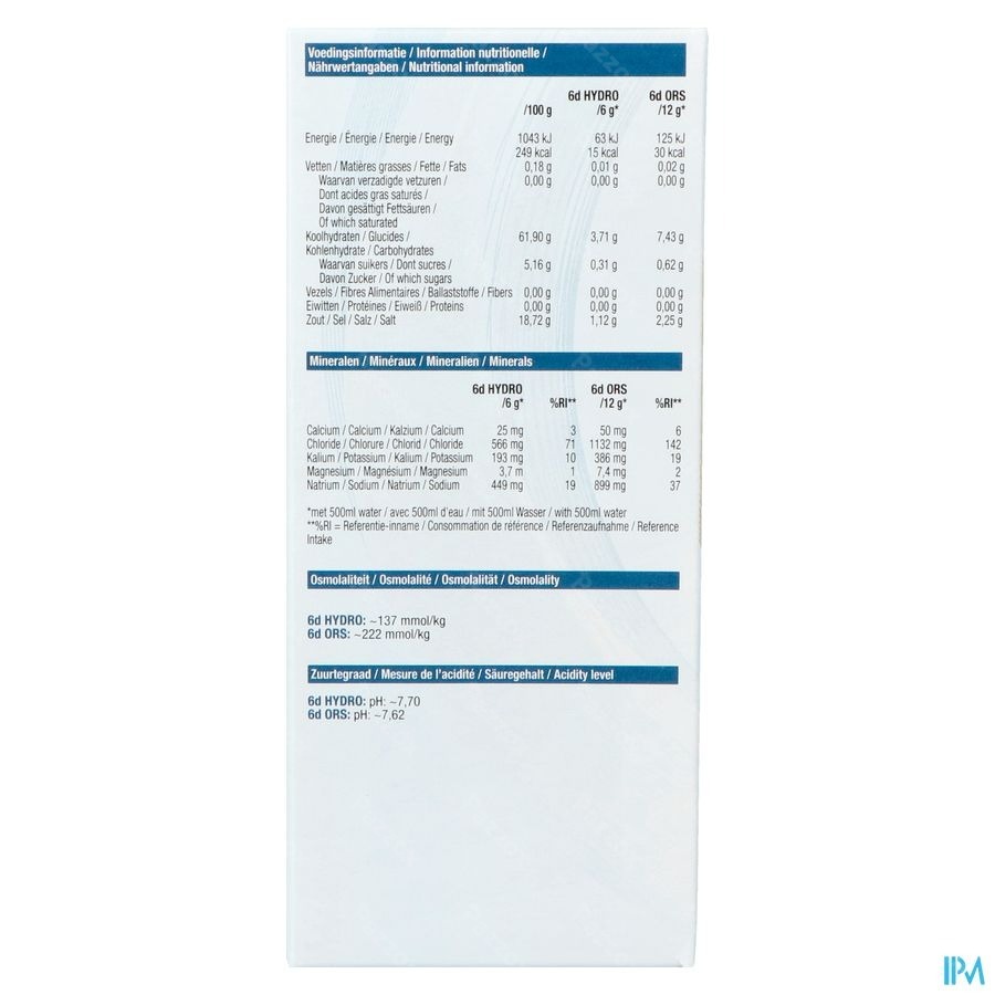 | /100g | /6g (1 portion 6d Hydro) | /12g (1 portion 6d ORS) | |