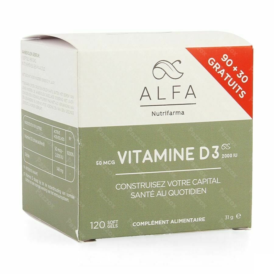 Pourquoi choisir Alpha Vitamine D3 (2000 UI) La vitamine D3 contribue à : au maintien d'une fonction musculaire normale au maintien d'une ossature normale au maintien...