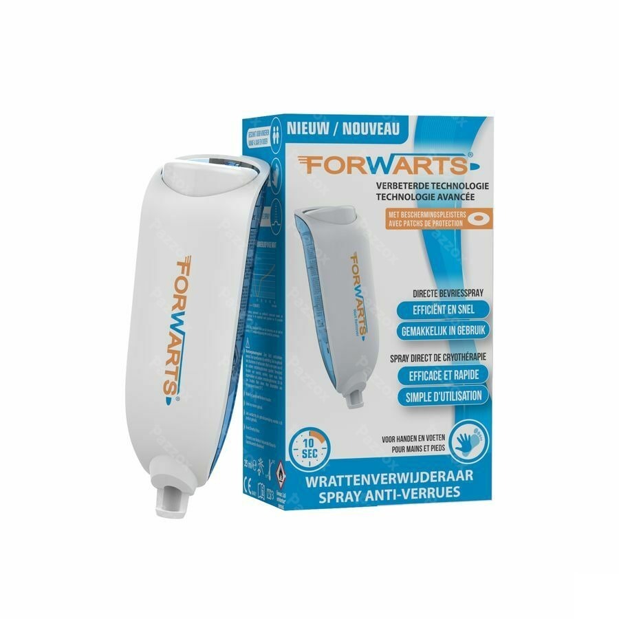 Spray anti-verrues. Spray direct de cryothérapie. Forwarts gèle la verrue à l'aide d'un spray de cryothérapie direct et continu. Les médecins et les dermatologues utilisent souvent la cryothérapie. Forwarts est un moyen sûr, rapide et efficace d'éliminer les verrues. Il peut geler le centre de la verrue à l'aide d'une pulvération précise de gaz refroidissant. Après le traitement, la verrue tombera dans les 10 à 14 jours. Les verrues persistantes peuvent nécessiter plusieurs traitements.