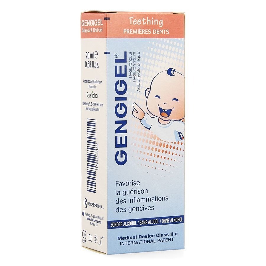 Gengigel ® Teething est un gel oral composé d'une matrice polymère muco-adhérente novatrice et brevetée qui adhère pendant un laps de temps prolongé aux dents et aux genci...