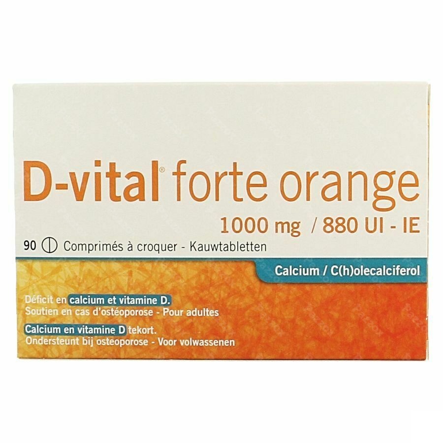 D-vital Forte Sinaas 1000mg/880ie is een geneesmiddel in de vorm van kauwtabletten met een verfrissende sinaasappelsmaak. Elke tablet bevat een combinatie van vitamine D3 en ...