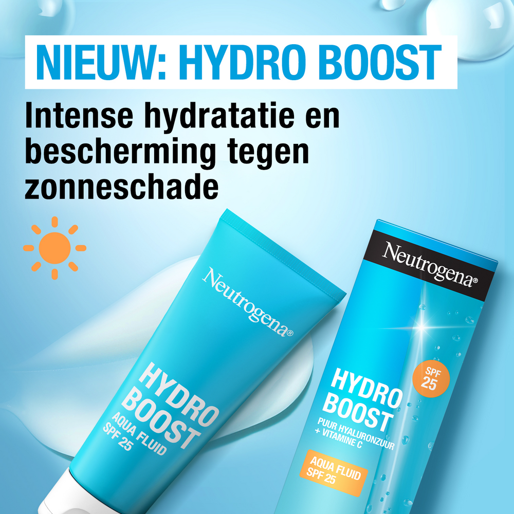 De Neutrogena Hydro Boost Hydrating Fluid SPF25 is een hydraterende vloeistof ontwikkeld in samenwerking met dermatologen. Deze ultralichte en niet-vette formule biedt intense hydratatie en dagelijkse bescherming tegen vervuiling en zonneschade. Met krachtige ingrediënten zoals hyaluronzuur, antioxidant vitamine C en breed spectrum UVA/UVB-bescherming, zorgt deze vloeistof voor een stralende teint en versterkt het de natuurlijke beschermingsbarrière van de huid. Geschikt voor alle huidtypes en niet-comedogeen. Met zijn unieke formule zorgt dit product niet alleen voor een stralende en gezonde huid, maar biedt het ook een ongeëvenaard gevoel van lichtheid en comfort bij het aanbrengen.