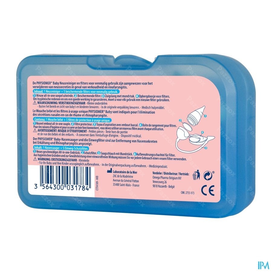 - Voor een betere verwijdering van de neussecreties gebruikt u PHYSIOMER® Baby Spray alvorens de neus te reinigen.