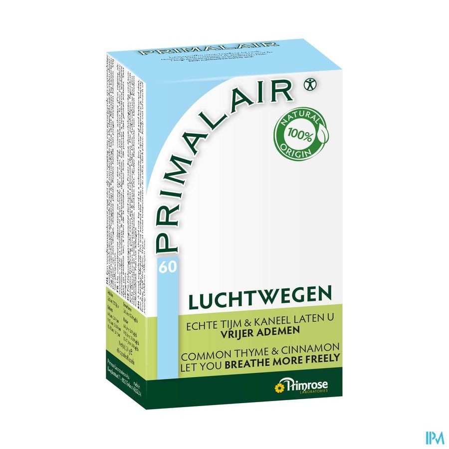 Primalair is een voedingssupplement dat ontwikkeld is op basis van jarenlange professionele ervaring in defytotherapie. Het bevat 5 planten met een gunstige invloed op onze luchtwegen.
