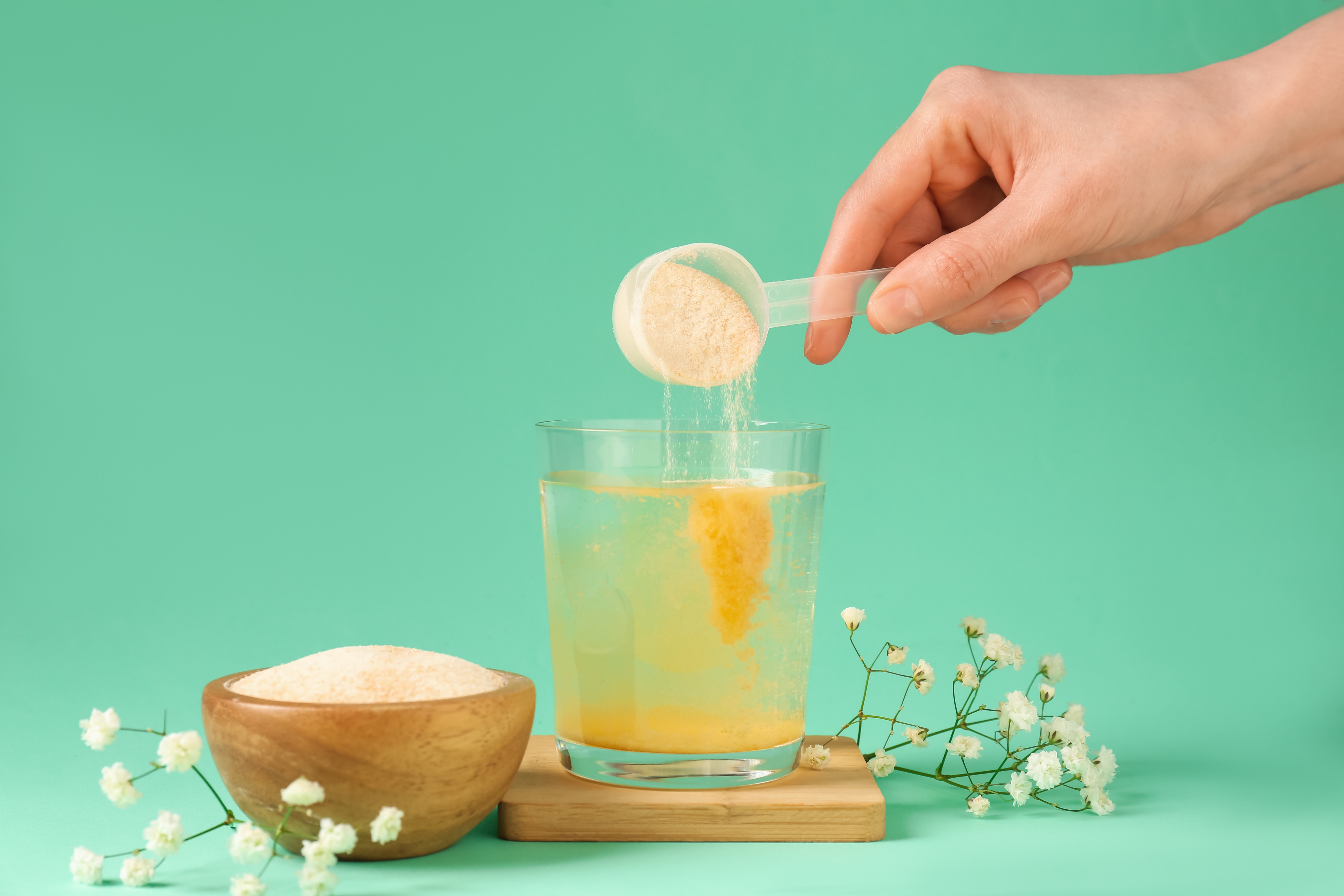 Supplementen met collageen kunnen een duwtje in de rug geven. Vooral wanneer ze gecombineerd worden met vitamine C, wat nodig is voor de aanmaak van nieuw collageen.